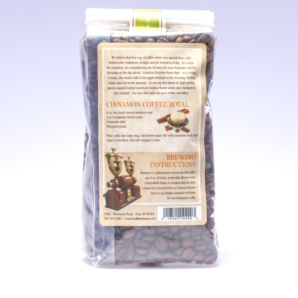 We believe that first cup of coffee comes at a special time, right between the restfulness of night and the busyness of day. It’s a time for transition, for remembering the dreams too soon forgotten and for focusing on the day ahead. Grandma Hoerner knew that—as a young woman, she would walk in the apple orchard in the morning, finding solace and rest in the moment. As you sip this blend of high-grown, micro-roasted Central American Arabica beans, savor your moment in the orchard. You may find each day goes a little smoother.