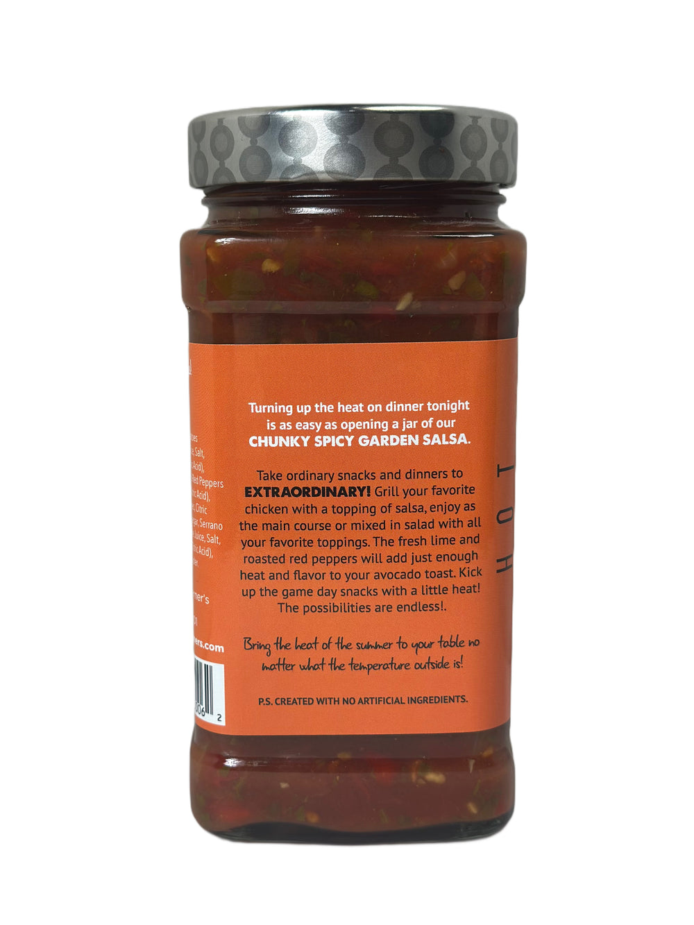 Boost the spiciness of your dinner with our Chunky Spicy Garden Salsa, made with all-natural ingredients. Enjoy a taste of summer on your table, regardless of the outside temperature. And Just in time for the Big Game!
